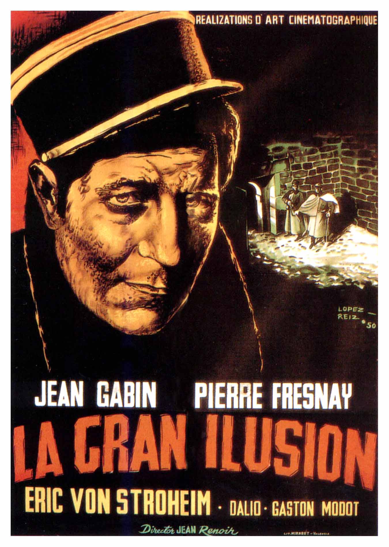 Muchos años antes de Kubrick rodara Senderos de Gloria (Paths of glory), el cineasta francés Jean Renoir dejó para la historia del cine otra obra maestra sobre el conflicto bélico que tituló Le Grande Illusion (La Gran Ilusión), rodada en 1937. Renoir contó con un reparto extraordinario encabezado por la gran estrella del cine galo, Jean Gabin, Pierre Fresnay, y un inconmensurable Erich Von Stroheim en el papel de un comandante alemán.