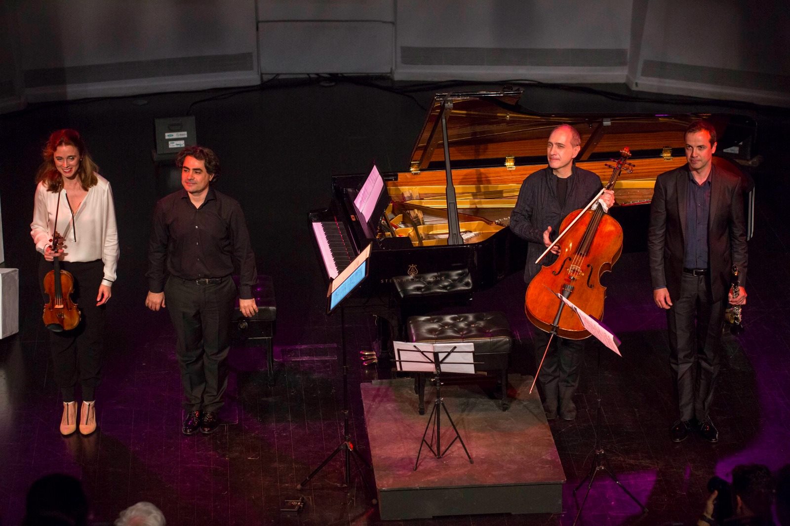 Vaya por delante que Quantum Ensemble presentó, como es habitual, una alineación de lujo: la violinista holandesa Frederieke Saeijs, con un curriculum impresionante; al violonchelo el bilbaíno Asier Polo, uno de los mejores del mundo y no es una bilbainada, y los tinerfeños Cristo Barrios al clarinete y Gustavo Díaz – Jerez al piano, ambos de prestigio musical incontestable.